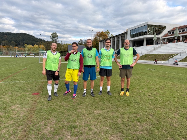 Dieses schöne Kopfballtor von Christoph ging wie ein Ruck durch die gesamte Mannschaft und mobilisierte noch ein letztes Mal die letzten Kräfte. Der Schreiber schlug vor, das Spiel doch jetzt mit einem Unentschieden abzubrechen; zu gross sah er die Gefahr eines erneuten Gegentreffers. Oli jedoch meinte ganz gelassen, dass es ja auf der anderen Seite auch noch Zeit hätte für den Sieg… und zum Glück hörten wir ihm zu! Als das Spiel quasi vor dem Abpfiff stand und wahrscheinlich die Grünen schon mit den Gedanken in der warmen Dusche standen, wurde ihnen eine Sekunde fehlender Konzentration zum Verhängnis, Uli konnte den Ball an Calle als letzten Mann der Grünen irgendwie vorbeistochern, um im Anschluss Michel keine Chance lassen… 5:4 und damit endete das Spiel mit einem Jubelschrei der Bunten, die sich tapfer gegen angriffslustige Grüne geschlagen haben… ein Sieg des unglaublichen Engagements einzelner Spieler und der Willensstärke bzw. des heroischen Kampfgeistes des gesamten Teams… und damit endet auch der unparteiische Spielbericht für dieses Mal! 😉