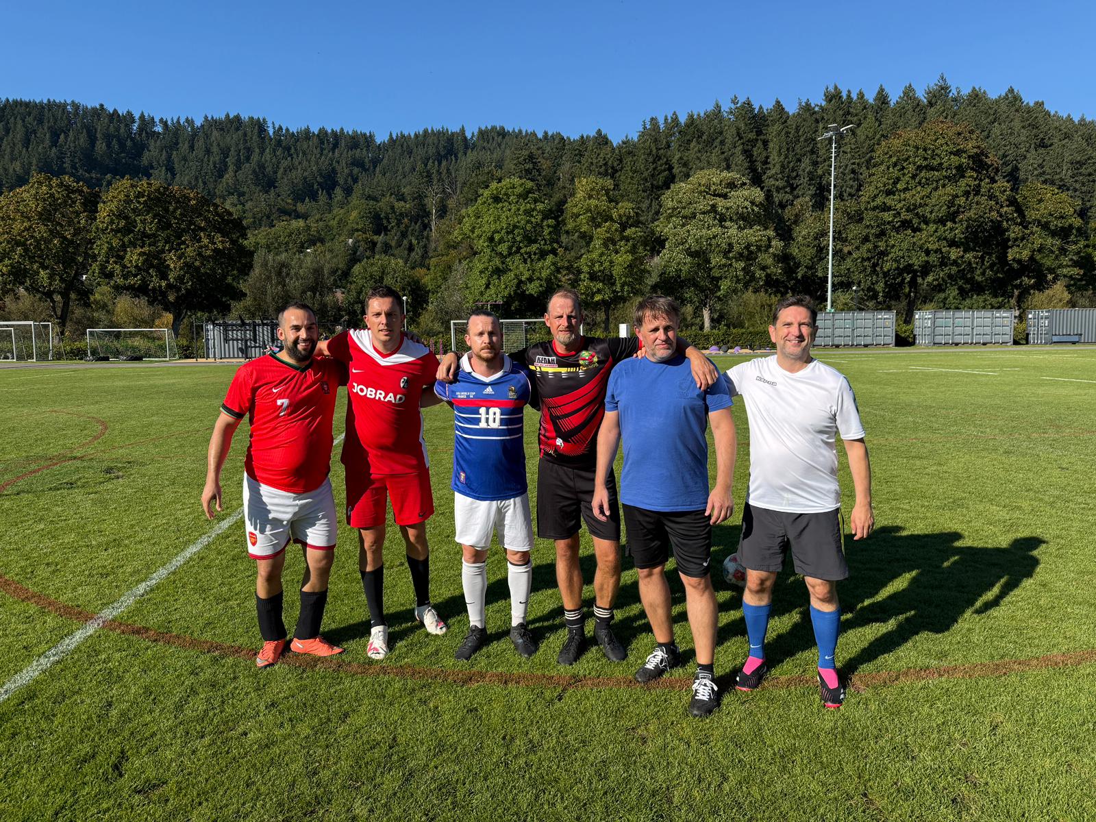 Ein Highlight waren sicher nicht die Gerüche in der Luft. Offenbar muss die Terrasse des Hokk neu lackiert werden, und die Dämpfe sorgten zumindest kurzzeitig für Benebelung. Hans Peter nutzte den Zustand prompt und wiederholte Uwe Seelers legendäres Hinterkopf-Eigentor von 1970 in der 70. Minute. Schön anzusehen, wie der Ball im Dreieck einschlug und Max völlig chancenlos ließ.