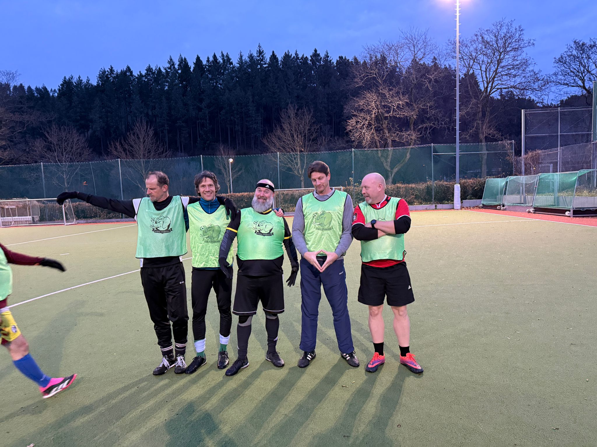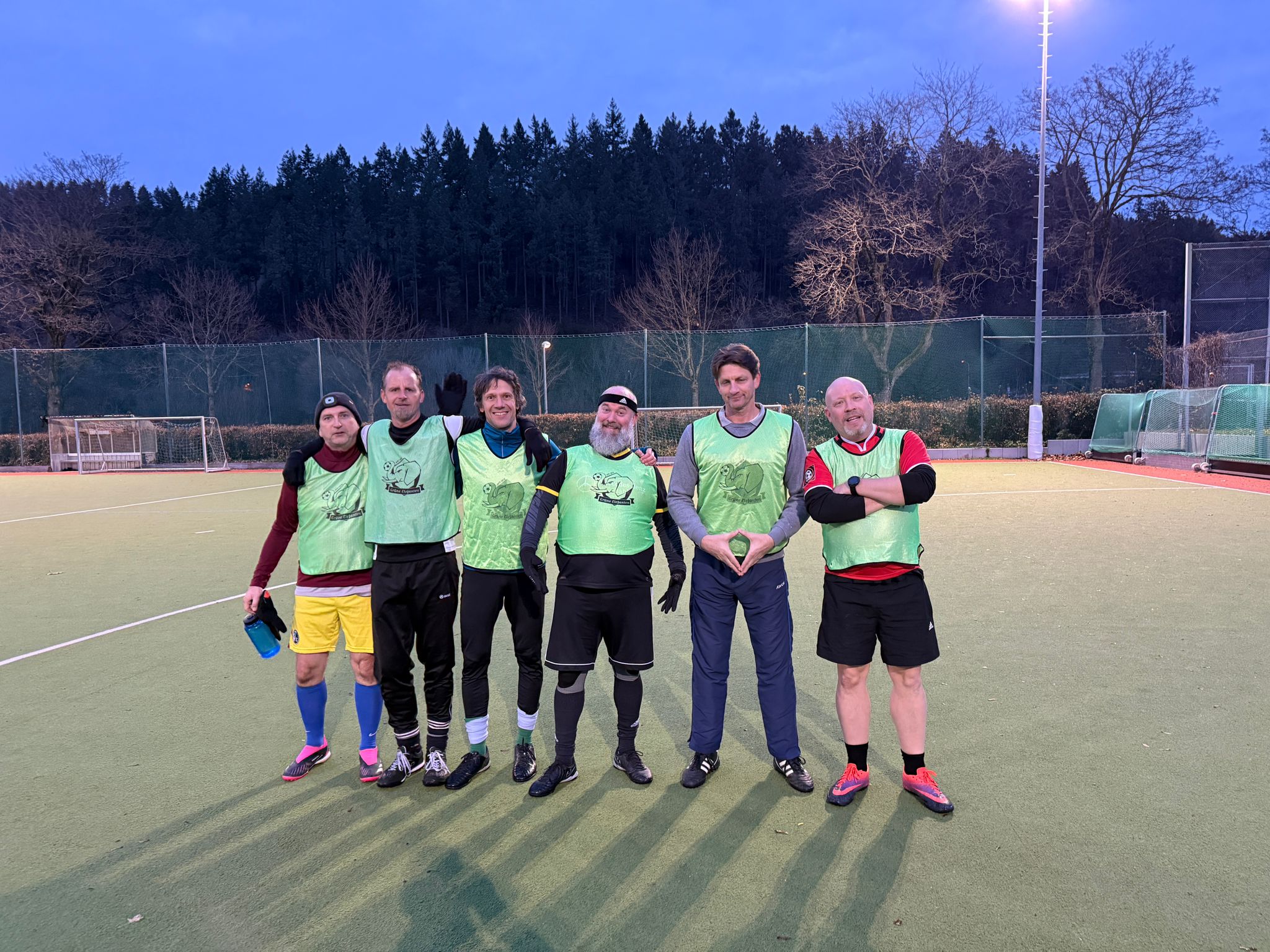 In einem torreichen Duell der Altherrenmannschaft „Grüne Elefanten“ setzten sich am Ende die Bunten mit 11:9 gegen die Grünen durch – ein Spiel, das eher an Handball-Ergebnisse erinnerte als an klassischen Fußball.